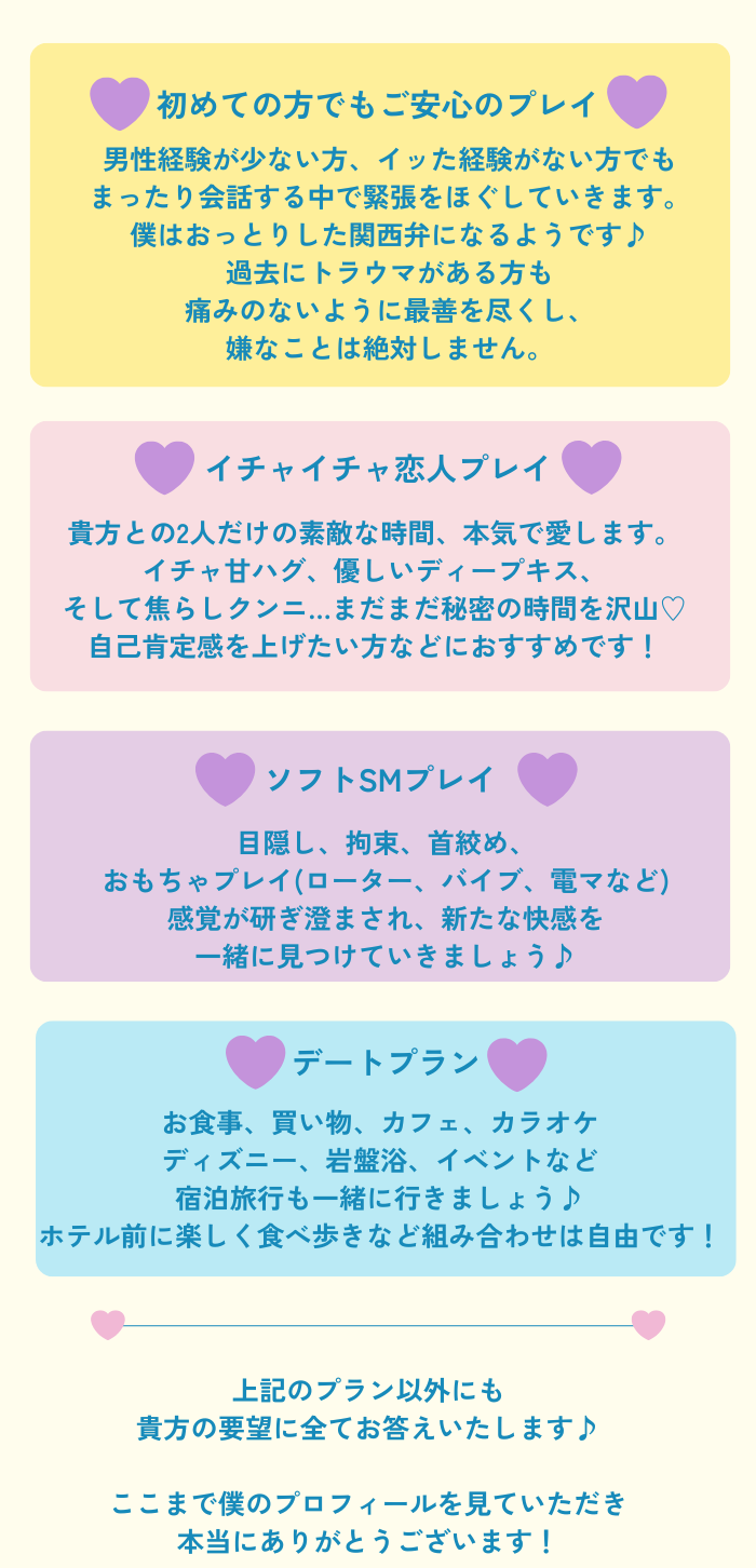 緊張しててもきちんとリードして下さるので、安心して身を委ねることができました!