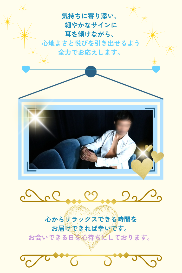 落ち着いた低めの声と、包み込むみたいな温かい手に触れられた瞬間、全身の力がふわ〜っと抜けちゃいました☺️