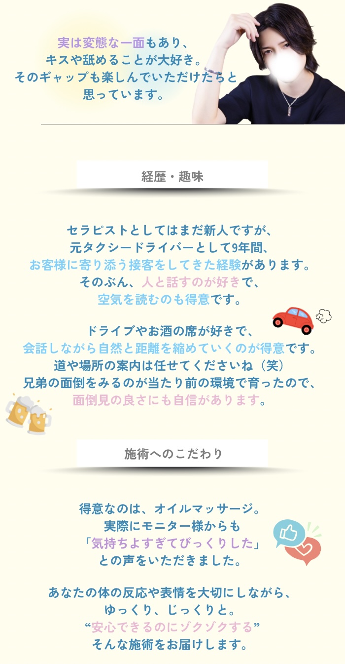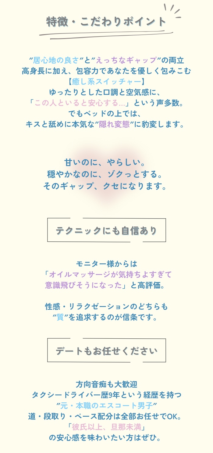 派手さではなく“落ち着きのある癒し”を求めている人に、心からおすすめできるセラピストさんです♥️