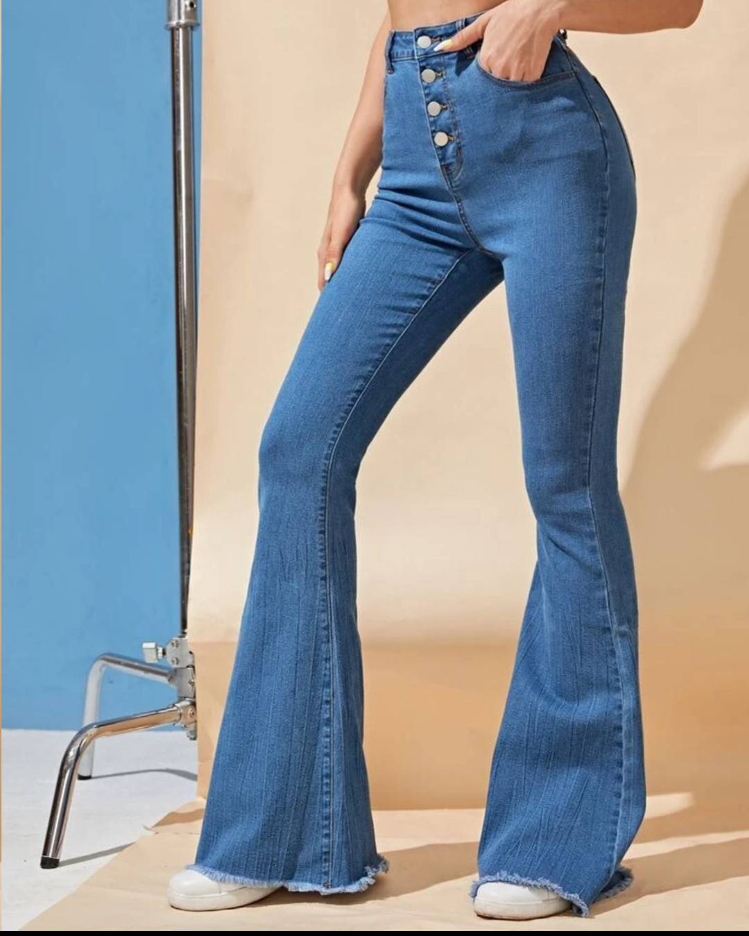 いいえ、フレアパンツを履いた女性の下半身です。