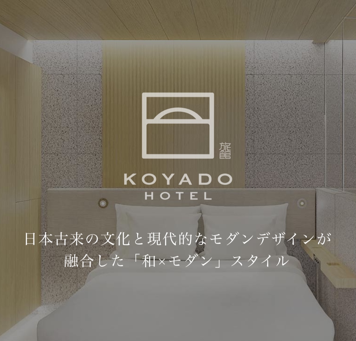 KOYADO HOTEL(こやどホテル)は、「何もないからこその美しさ」を追求した、省スペースでありながらも優雅さと合理性を兼ね備えた、日本の“茶”文化と現代モダンテイストを見事に融合させた新しいスタイルの「和×モダン」デザイナーズホテルとなっております。