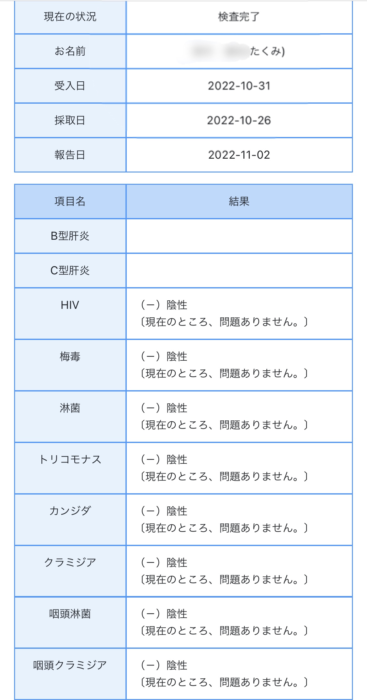 11/02 12:50 UP! 性病検査結果について。TAKUMI(タクミ) (33歳)