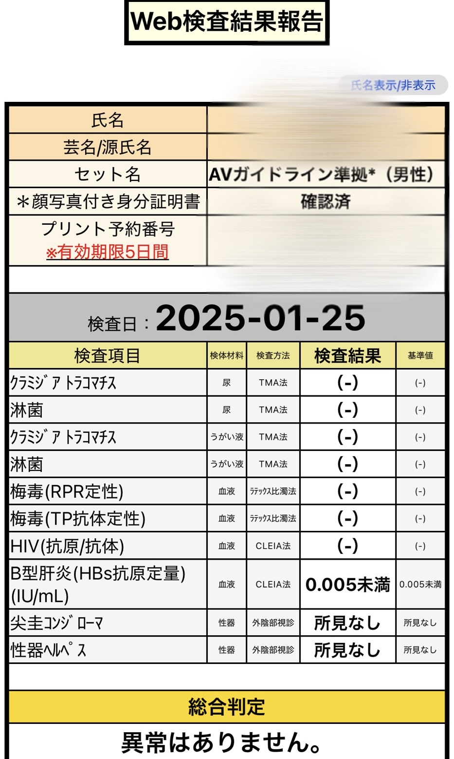 TAKUMI(タクミ) 性病検査結果について